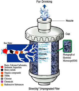 | Micro extruded filter mixed with activated carbon, special resin and silver compounds in high temperature |